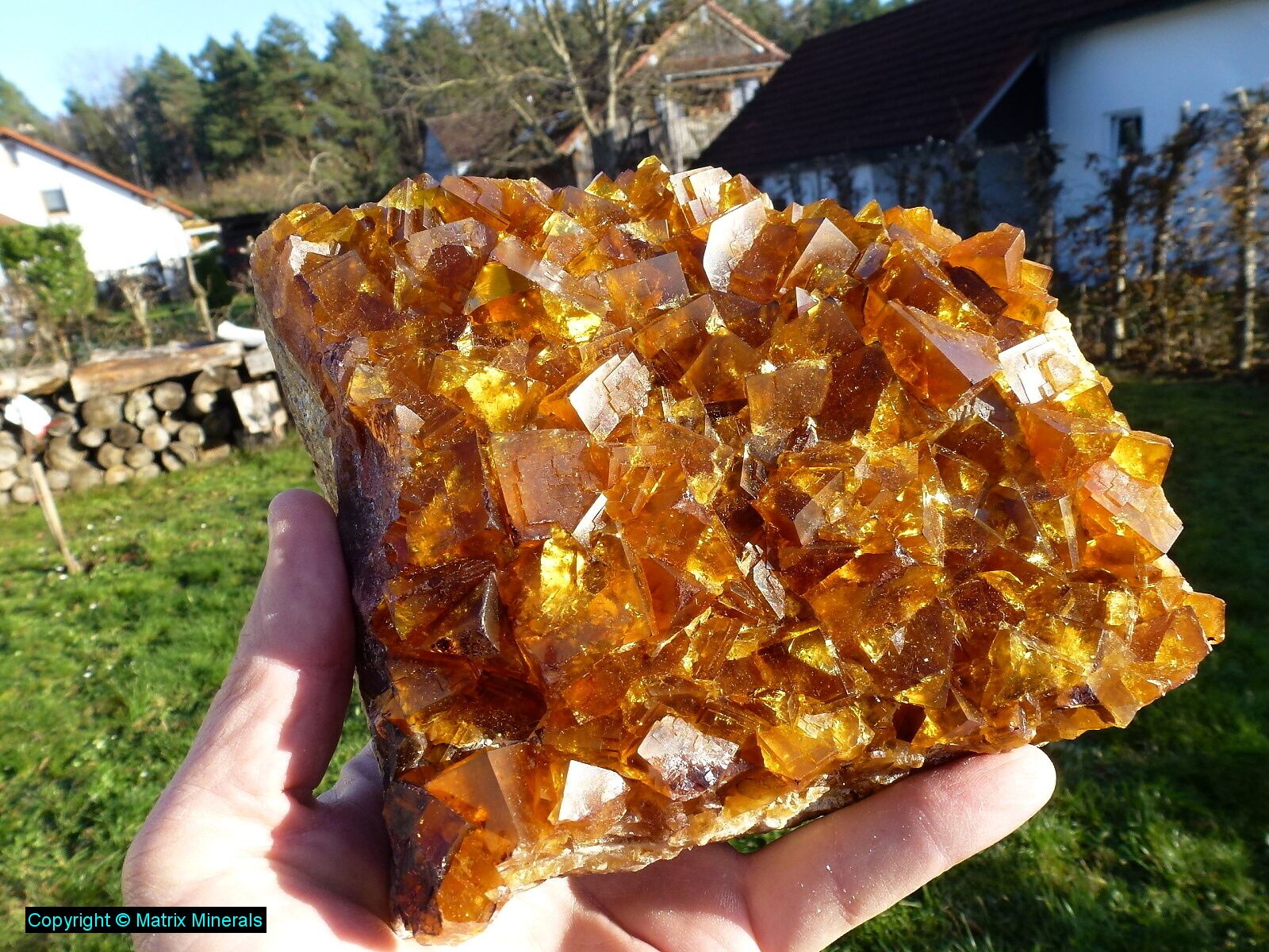 | Fundort: Marienschacht Wölsendorf | Hier eine weitere Stufe mit Fluorit xx var. Honigspat aus alten Tagen im Angebot. Es handelt sich um eine Platte bestehend aus Fluorit Honigspat Kristallen hervorragender makelloser Top Qualität. Das Stück wurde um 1974 gefunden, die Stufe steht im KA zum Verkauf. Anfragen erbeten. PS: Habe noch eine ganze Sammlung mit 120 verschiedensten Stufen aus dem Wölsendorfer Revier zu Verkaufen. Siehe Video ! Sammlung zu Verkaufen ! |