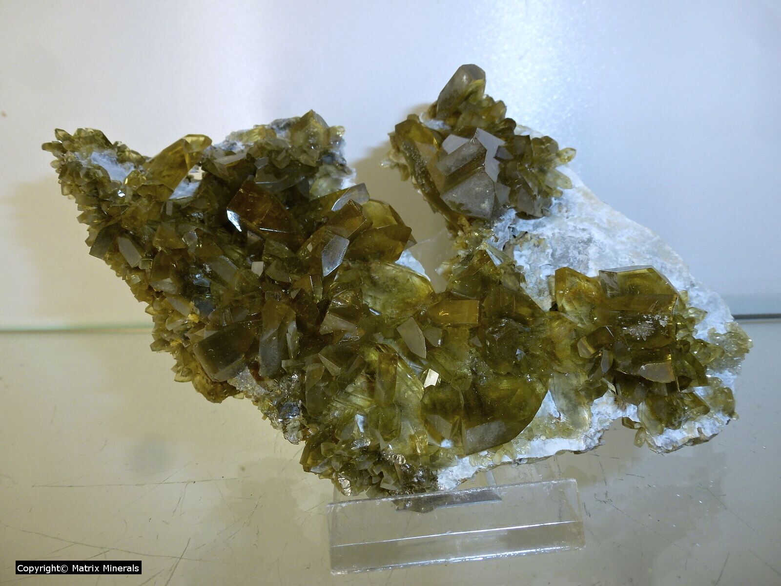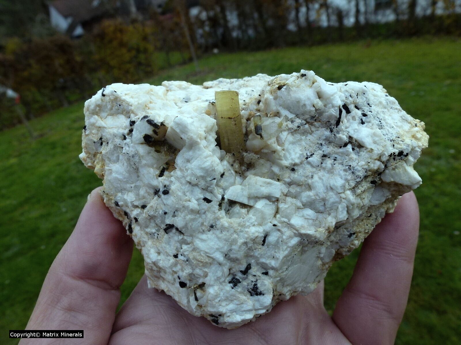 | Fundort: Insel Elba Italien | Hier zu sehen 2 Stufen mit Elbait Turmalin von der Insel Elba Italien. Es handelt sich um Einzelkristalle welche auf einer Pegmatit Matrix Kristallisiert sind. Die Farbe der Kristalle ist gelbgrünlich.Die Größe der Kristalle ist 10 mm bei der kleineren Stufe und 18 mm bei der größeren. solche Stücke sind sehr Rar und schwer zu bekommen. Das Video zeigt mehr Details. Seltene hochwertige Sammlerstücke ! |