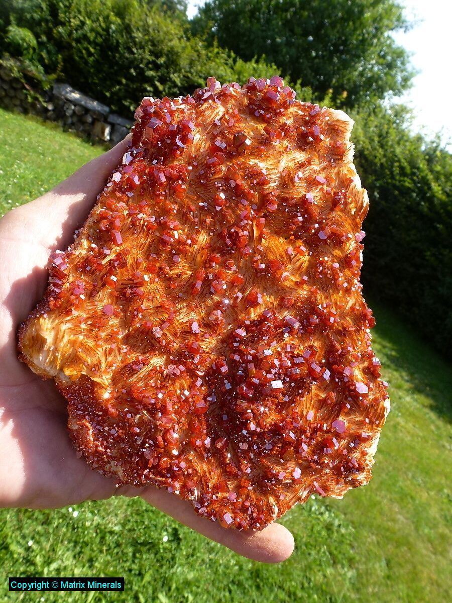 | Fundort: Mibladen Marokko | Hier im Angebot eine Platte mit Vanadinit Kristallen in phantastischer Qualität. In der Mitte sind die Kristalle etwas kleiner und außen herum sind richtig große xx entstanden. Die Farbe ist rot bis rot braun und das Stück ist makellos. Unglaublich ästhetisches und exklusives Superstück ! Abholung erwünscht dann 2300 ! |