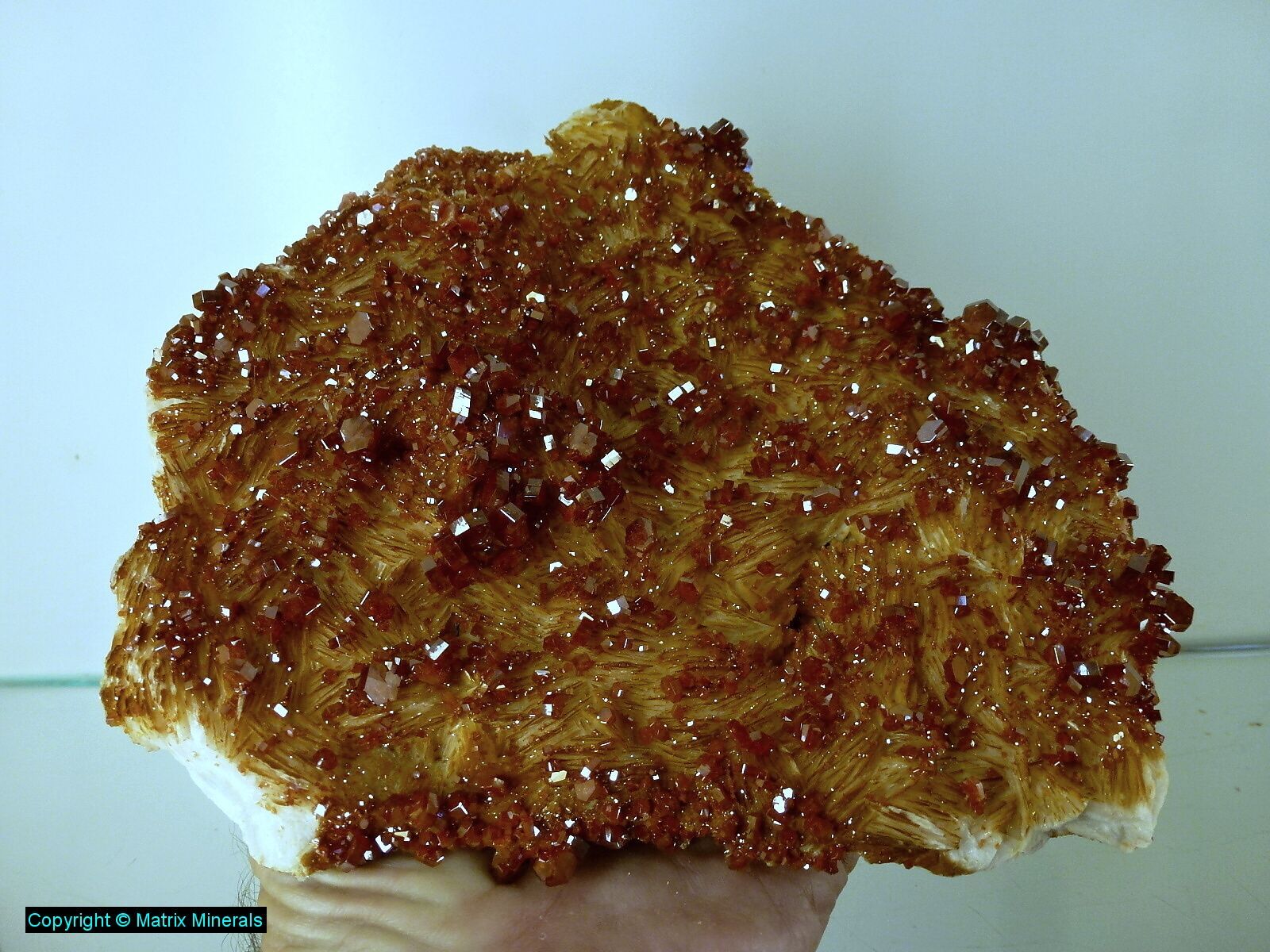 | Mineral: Vanadinit auf Baryt | Diese Stufe können Sie bei Matrix Minerals TV im Video # 933A nochmals im Detail ansehen ! |