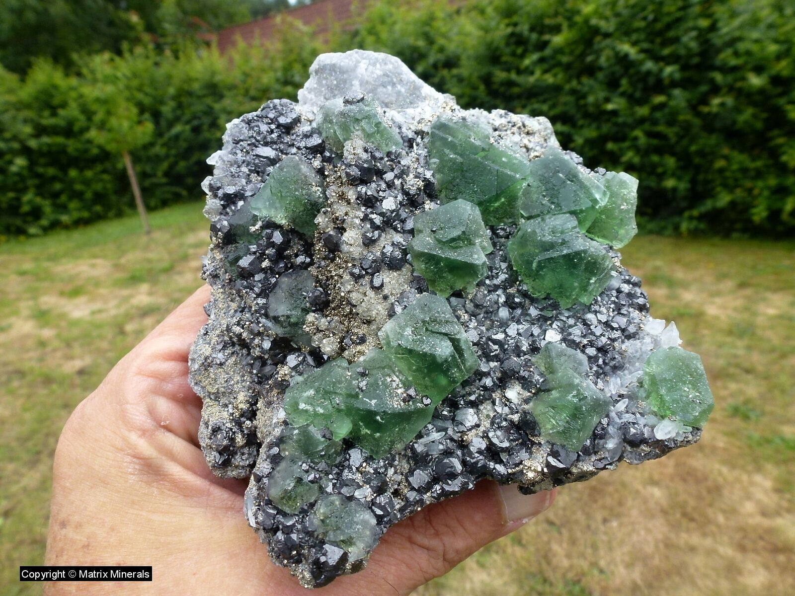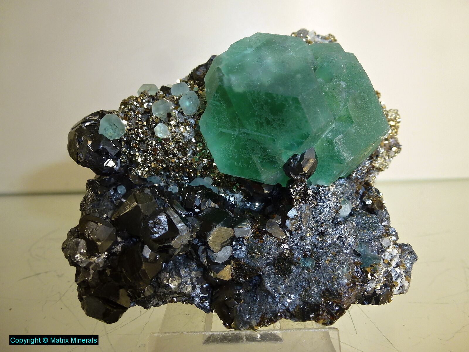 | Mineral: Fluorit auf Pyrit mit Geocronit und Sphalerit | Diese Stufe können Sie bei Matrix Minerals TV im Video nochmals im Detail ansehen ! |