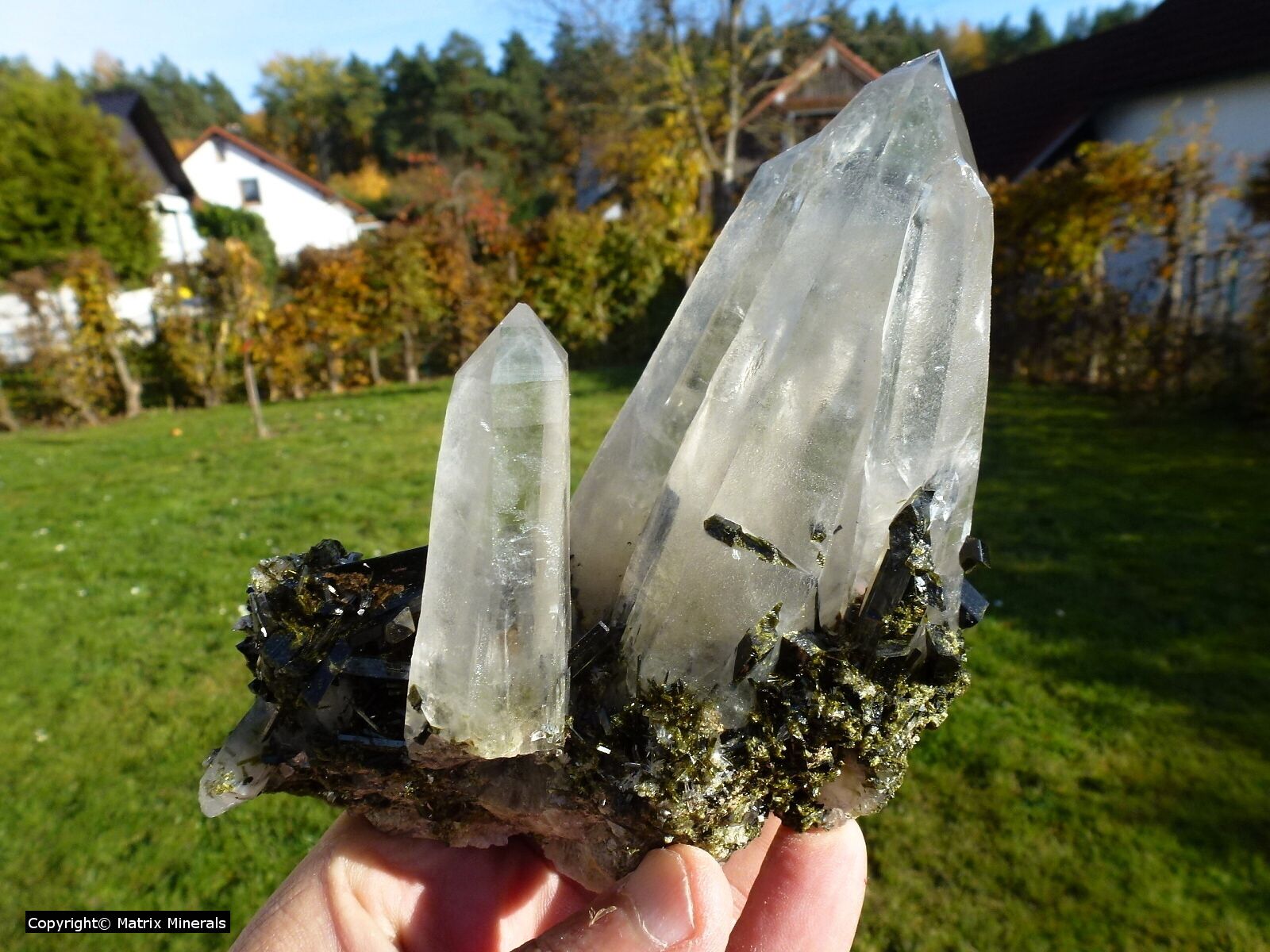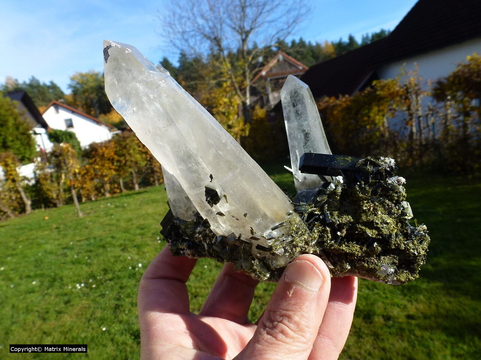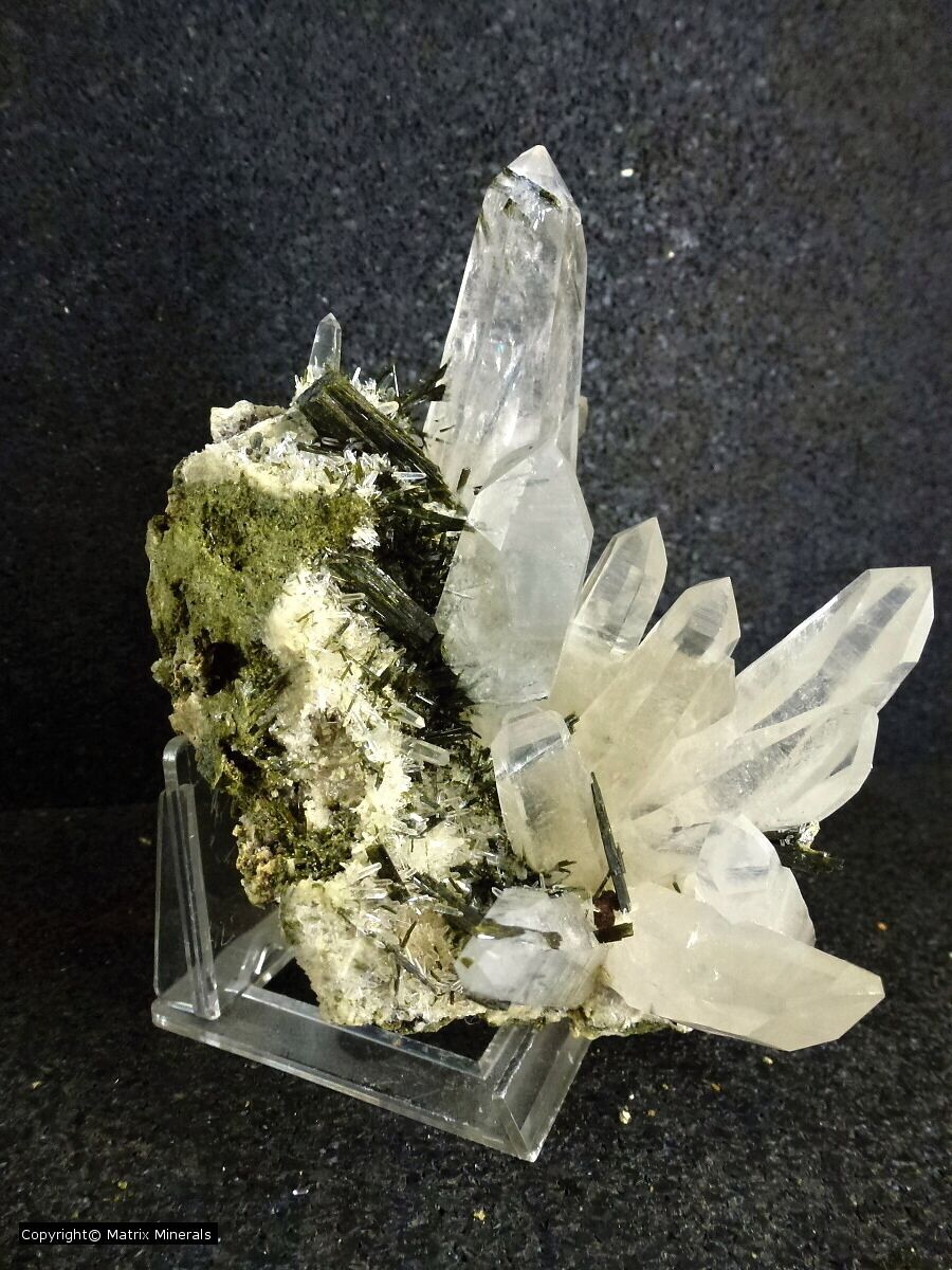 | Fundort: Mina La Verde, Cascas, La Libertad Peru | Hier im Angebot einige Stücke mit großen Quartz Spitzen welche wiederum mit großen Epidot Kristallen vergesellschaftet sind. Die Kristalle sind wirklich groß, findet man nicht so oft. Sehr exklusive Teile in Top Qualität. Siehe Video ! In diesem Fall auf Grund der freistehenden Epidote ist ein Versand sehr Riskant, Abholung erwünscht ! |