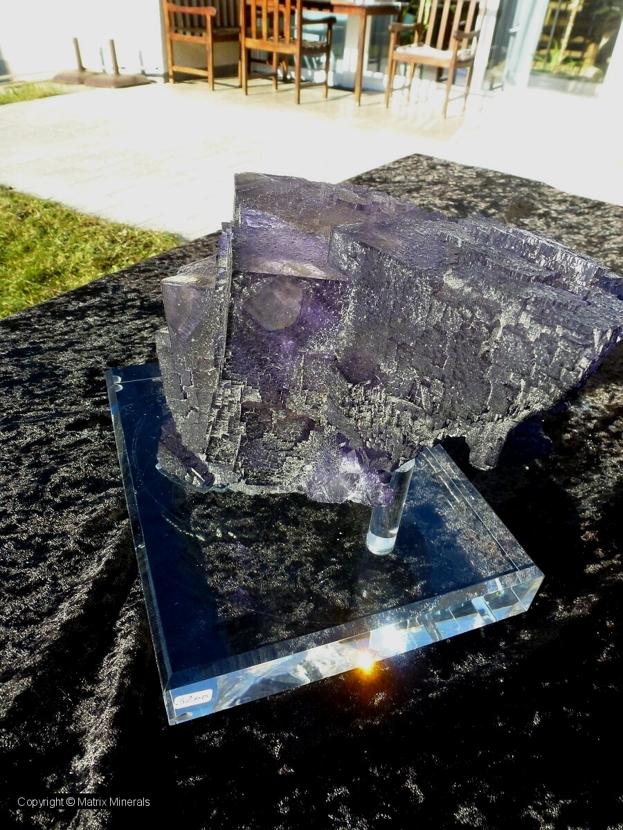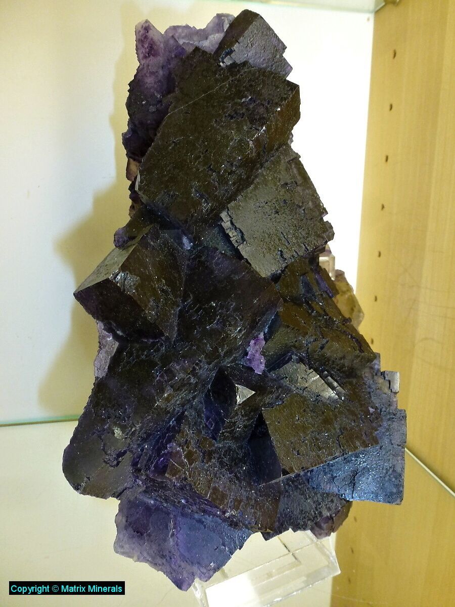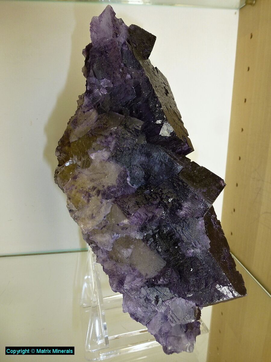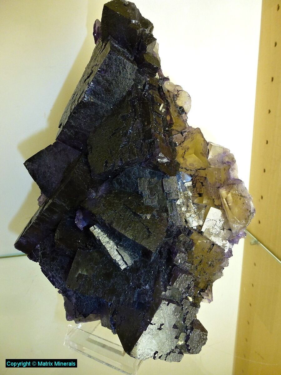 | Fundort: Elmwood Mine, Smith Co. Tennessee USA | Eine weitere recht imposante Museumsstufe mit mehreren verwachsenen großen Fluorit Kristallen welche auf einer Sphalerit Matrix kristallisiert sind. Auch diese Würfel haben an den Kannten zonar verfärbte vielette Zonen. Auch die Parkettierung des Kristalls ist ausgeprägt und makellos kristallisiert. Als Fluorit Freund habe ich natürlich sofort zugeschlagen, und mir das Teil gegönnt. Das Stück wurde auch 2003 gefunden, und stammt aus alter Sammlung. Es steht jetzt vorerst in meiner Sammlung und ist auf Anfrage auch zu Verkaufen. Das Kristalaggregat sitzt auf einen maßgeschneiderten custom made Acrylglassockel. Extrem Hochwertig und ästhetisch ! Mega ! Museumsqualität ! |