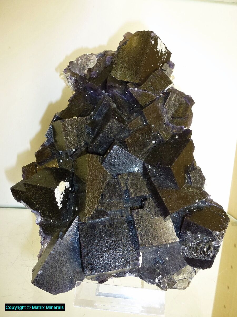 | Fundort: Minerva Mine, Hardin Co. Illinois USA | Eine erstklassige Fluorit Stufe mit phantastischen Fluorit xx bis 6 cm. Die Farbe der Würfel ist ein dunkles violet welches schön im Durchlicht durchscheint. Auch diese Stufe stammt aus einer älteren Sammlung und wurde ca. 1970 gefunden. Museumsqualität ! |