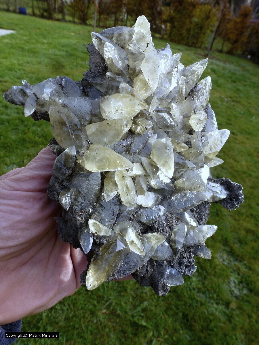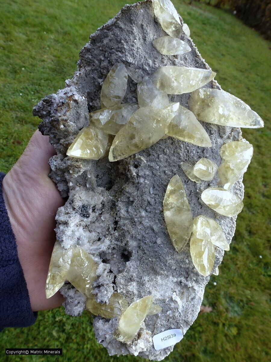 | Fundort: Sweetwater Mine, Raynolds Co., Missoury USA | Die Sweetwater Mine ist eine noch in Betrieb befindliche Blei Zink Mine im Gebiet Viburnum Trend Missouri. Dort werden in der Regel recht schöne Galenite und hin und wieder Calcite gefunden. Meist handelt es sich um diese goldgelblichen verzwillingten Doppelender xx. Diese sind in der Regel auf einer Dolomitischen Matrix in Vergesellschaftung von Chalkopyrit xx sowie Galenit xx aufgewachsen. In diesem Fall ein Stück mit makellosen xx in recht passabler Größe in makelloser Sammlerqualität ! |