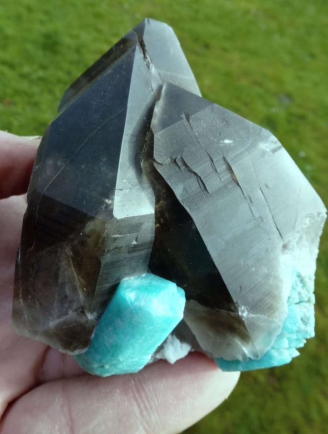 Sehr schwer überhaupt Amazonite mit Rauchquartz zu bekommen ! Diese Stufe wurde reconstruiert ! |