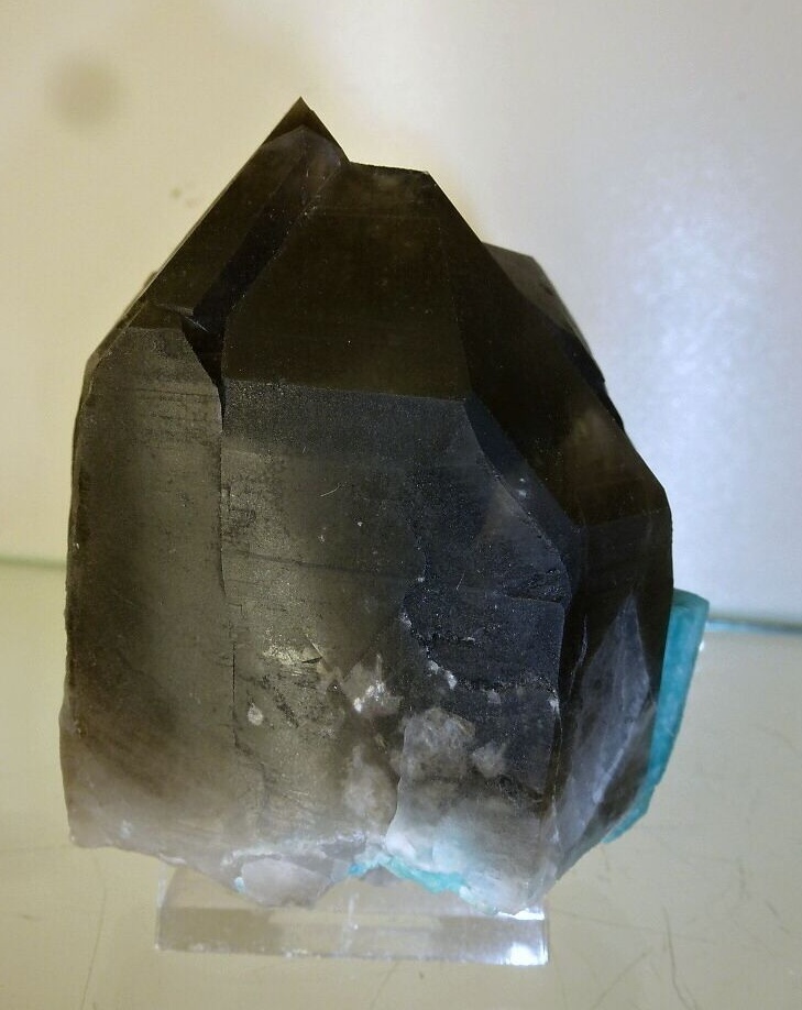 | Fundort: Smoky Hawk Claim, Colorado USA | Der Amazonit ist ja berühmt für Colorado. Hier eine Stufe mit Amazonit xx und Rauchquartz xx. Wie schon paar mal gesagt diese Amazonite werden in Teilen gefunden und wieder wie ein Puzzle reconstruiert. Das ist für solche Stufen Standart, da die Schichten in dem der Amazonit entstanden ist bereits durch die Erosion zersetzt und nicht mehr vorhanden sind. Diese Stücke sind sehr schwer zu bekommen, und immer sehr teuer. In diesem Fall zwei Rauchquartz xx welcher von Amazonit xx begleitet wird. Selten im Angebot ! |