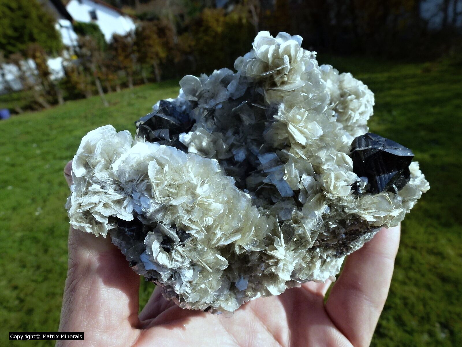 | Mineral: Scheelit mit Aquamarin var. Goshenit auf Muscovit | Diese Stufe können Sie bei Matrix Minerals TV im Video nochmals im Detail ansehen ! | ||