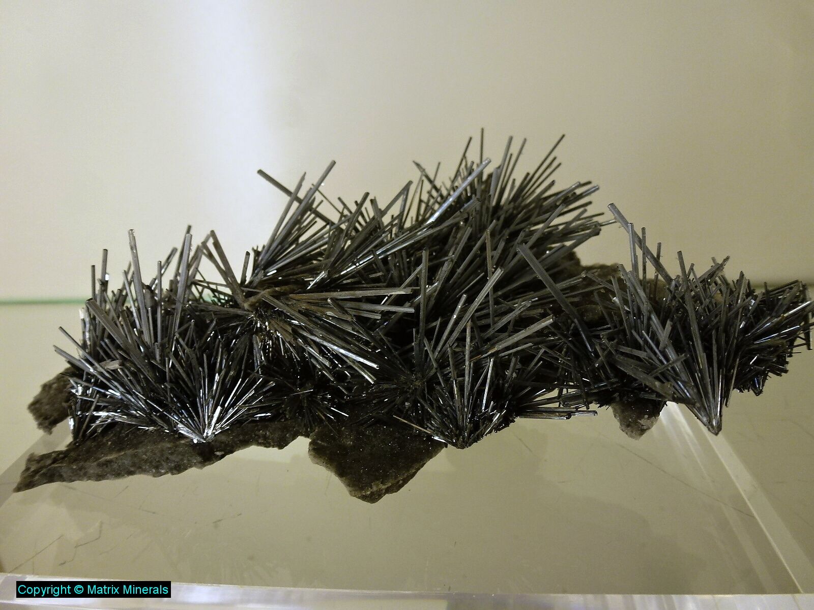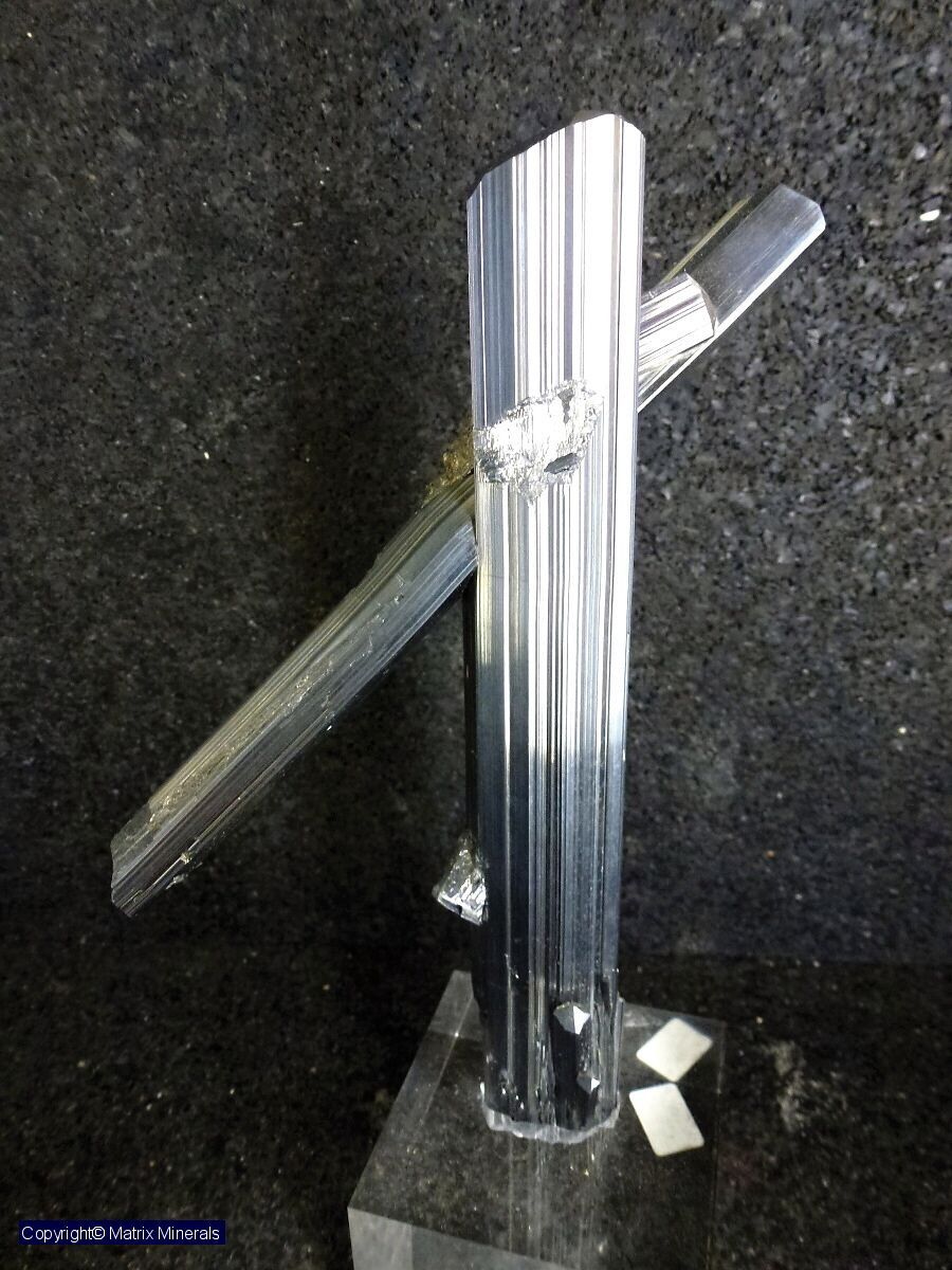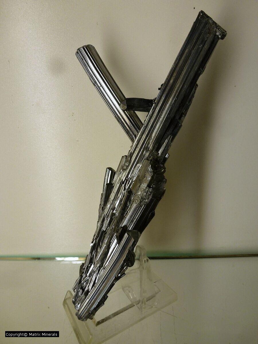| Fundort: Wuning Mine, Jiangxi China | Hier zu sehen eine Stufe bestehend aus langprismatischen etwas dickeren Antimonit Kristallen so wie sie nur in der Wuning Mine vorkommen. Diese sind hochglänzend perfekt mit Endflächen kristallisiert. Der Kristall sitzt in einem Acrylglassockel ! |